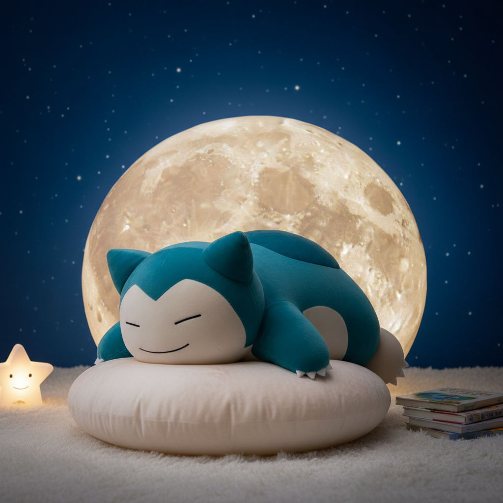 잠만보가 보름달 베개를 배고 자는 모습