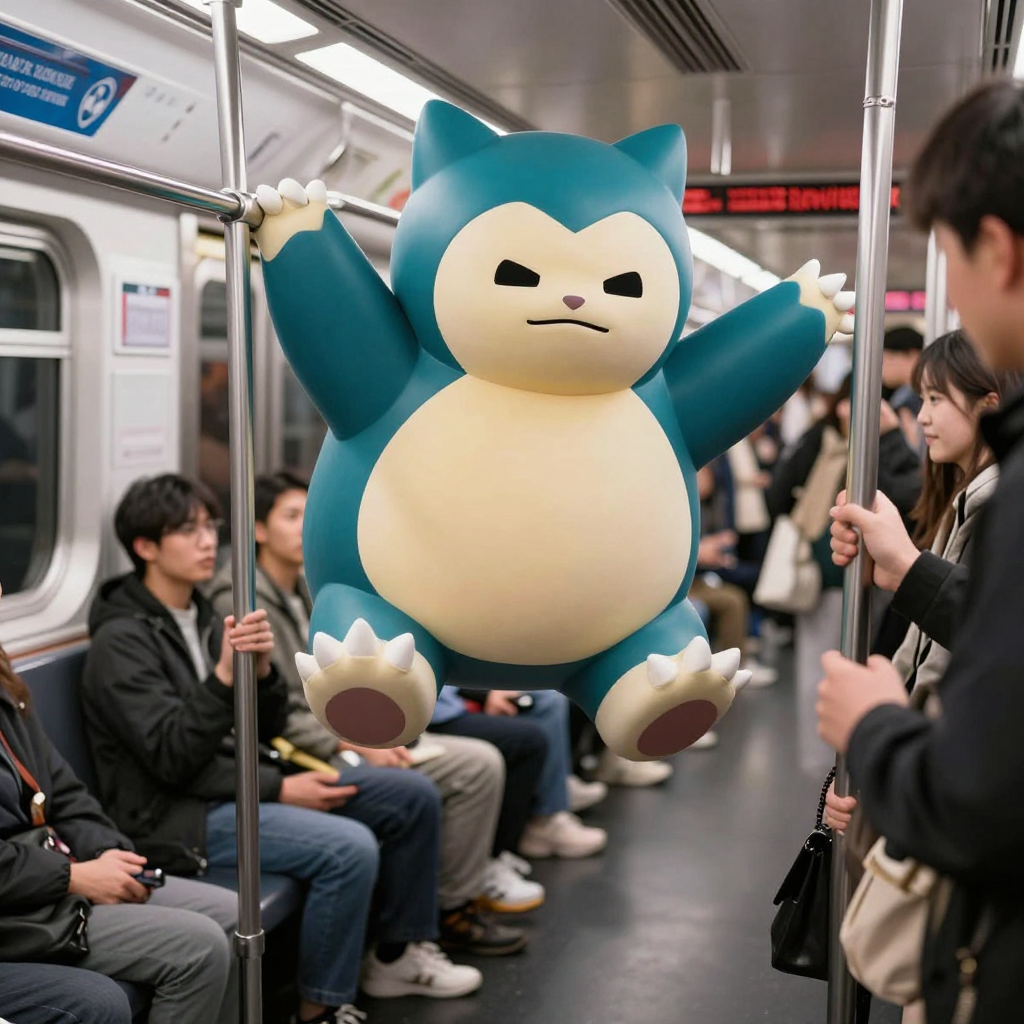 snorlax jumping at subway. and many people touch snorlax