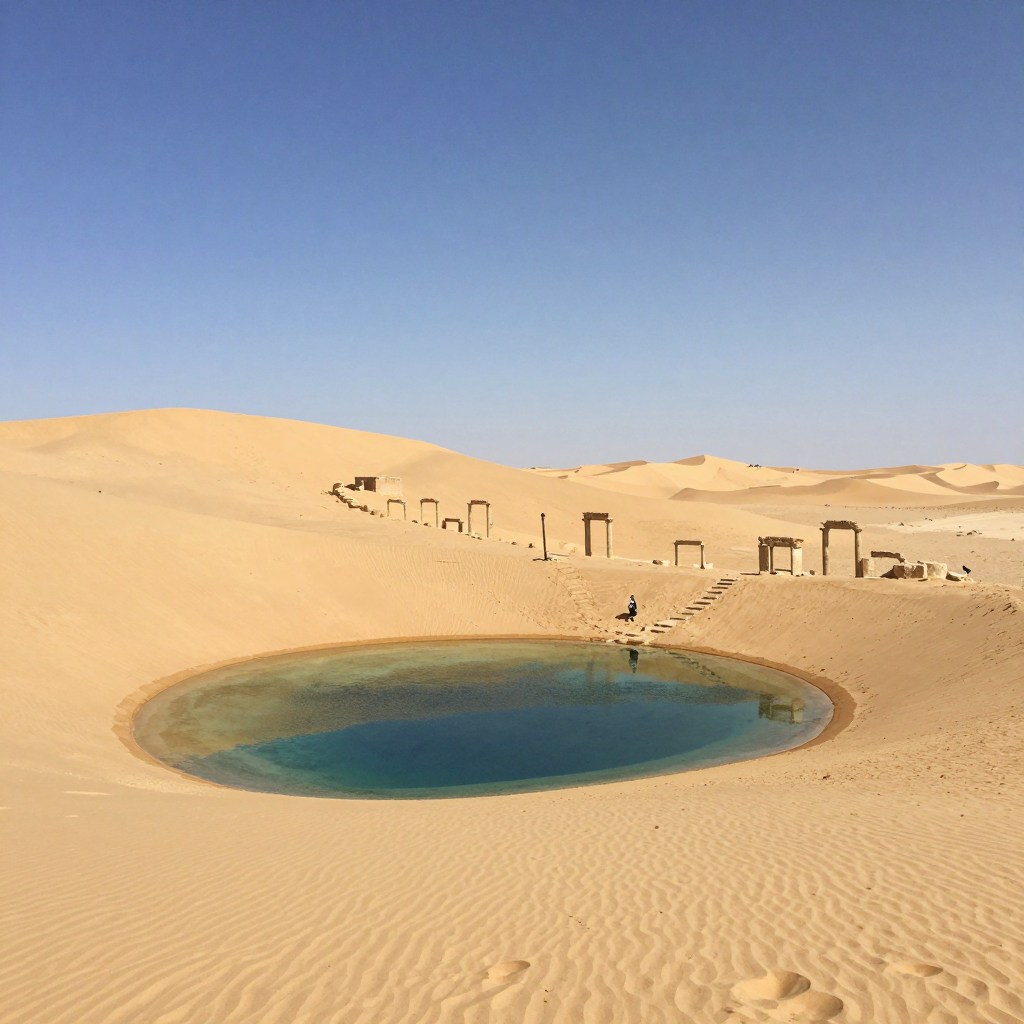 사막 한가운데 있는 오아시스와 고대 유적 | Z-Image 이미지 by 카카오만보