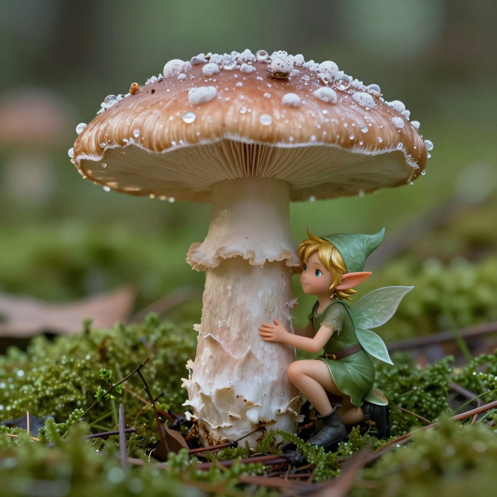 이슬 맺힌 버섯 위에 앉아 있는 작은 요정 | Z-Image 이미지 by 카카오만보