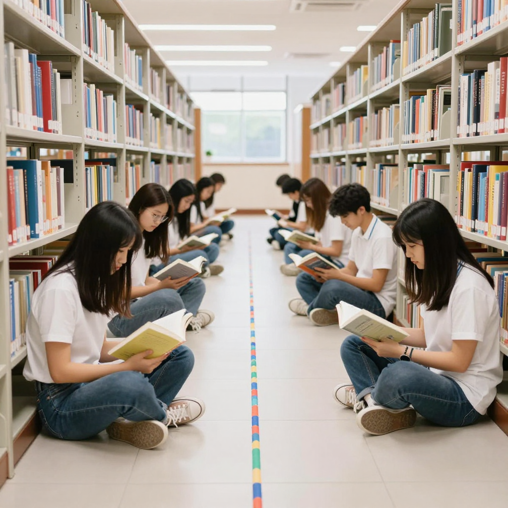 도서관 사다리에 앉아 책을 읽는 학생 | Z-Image 이미지 by 카카오만보