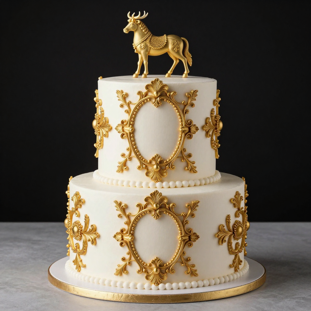 금박 장식이 올라간 화려한 로코코 스타일 케이크