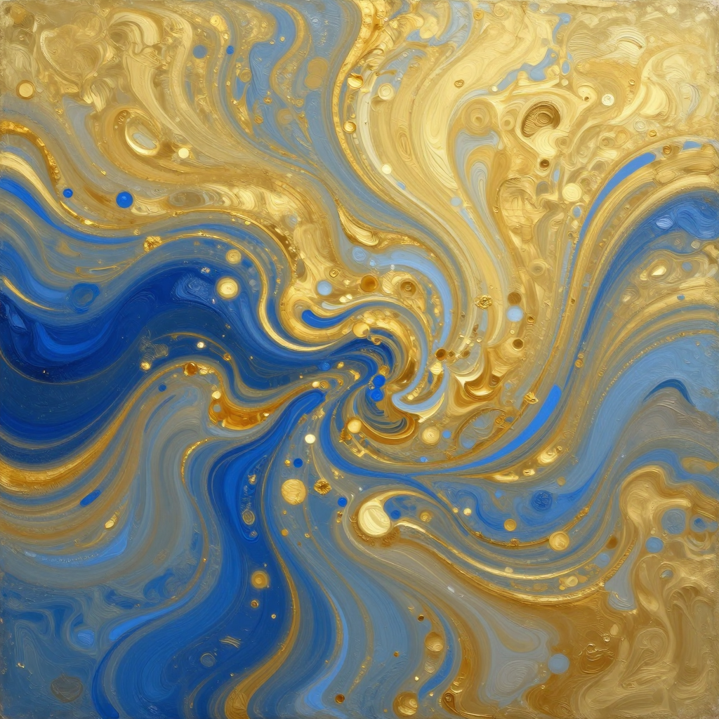 금색과 푸른색이 소용돌이치는 추상적인 플루이드 아트 | Z-Image 이미지 by 카카오만보