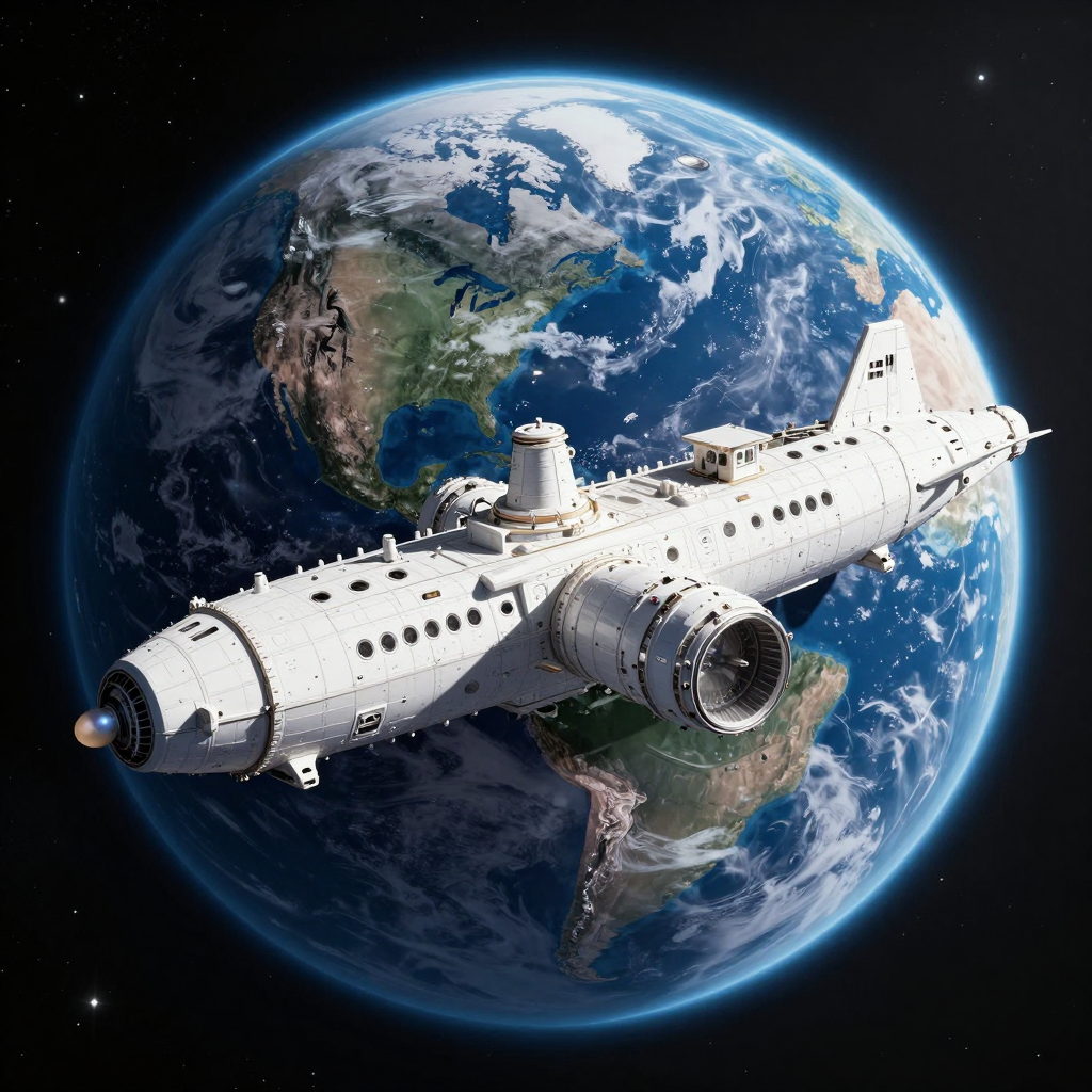 거대한 우주선이 지구 궤도에 정박해 있는 모습 | Z-Image 이미지 by 카카오만보
