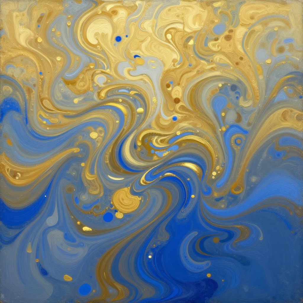 금색과 푸른색이 소용돌이치는 추상적인 플루이드 아트 | Z-Image 이미지 by 카카오만보