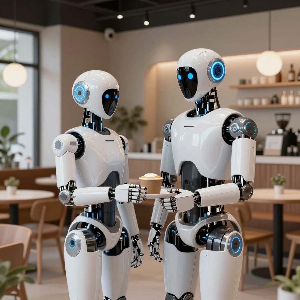 인공지능 로봇이 서빙하는 미래의 카페 | Z-Image 이미지 by 카카오만보