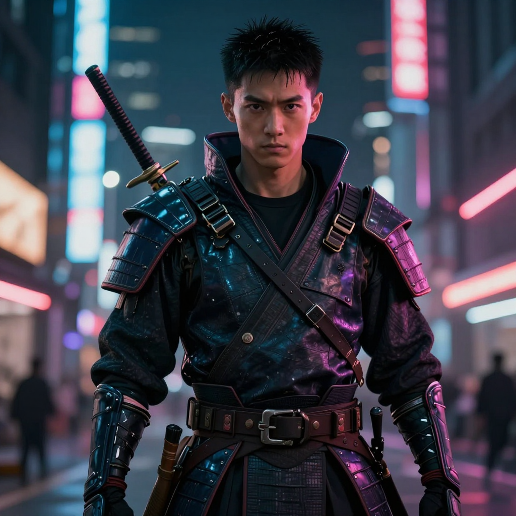 사이버펑크 스타일의 사무라이 전사 | Z-Image 이미지 by 카카오만보