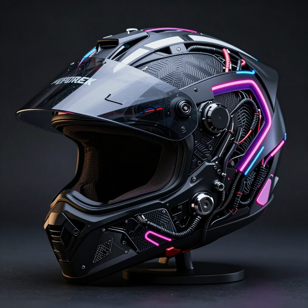 복잡한 전선이 연결된 사이버펑크 오토바이 헬멧 | Z-Image 이미지 by 카카오만보