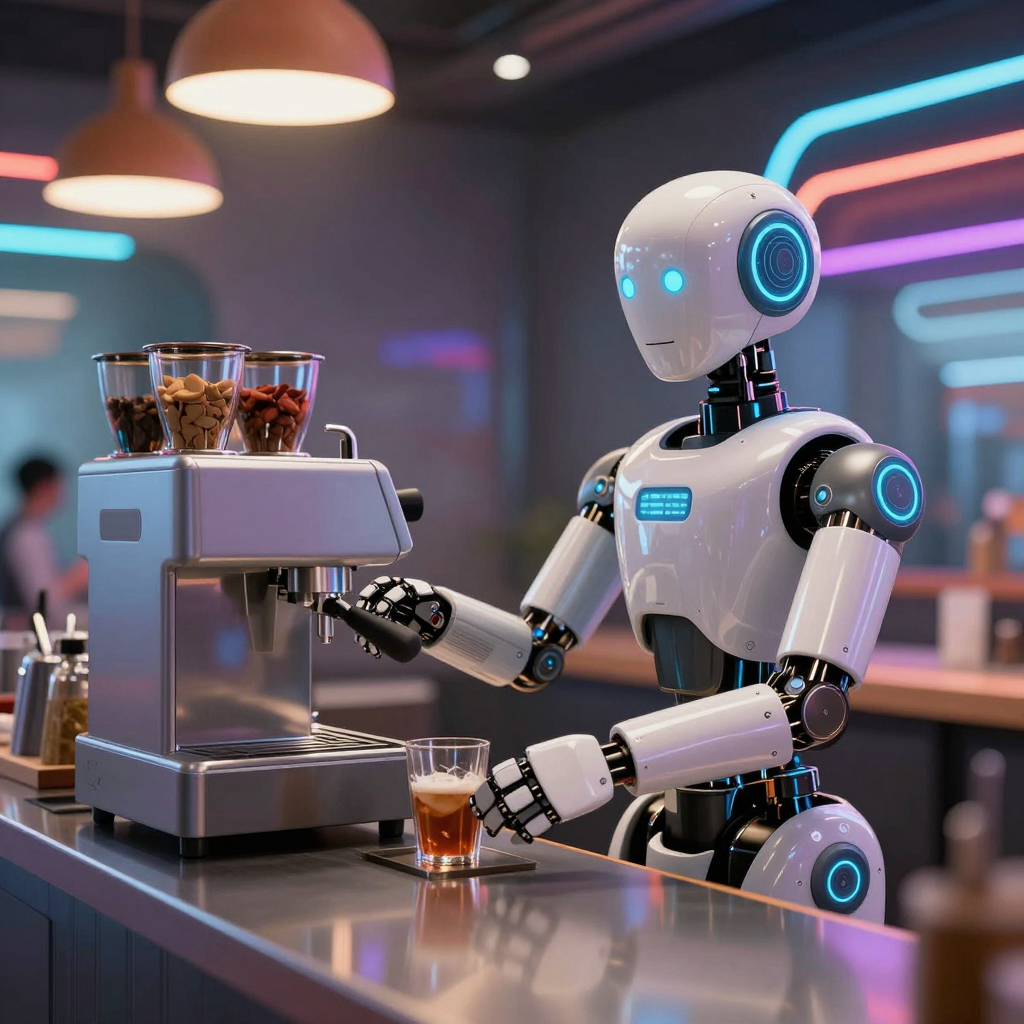 인공지능 로봇이 서빙하는 미래의 카페 | Z-Image 이미지 by 카카오만보