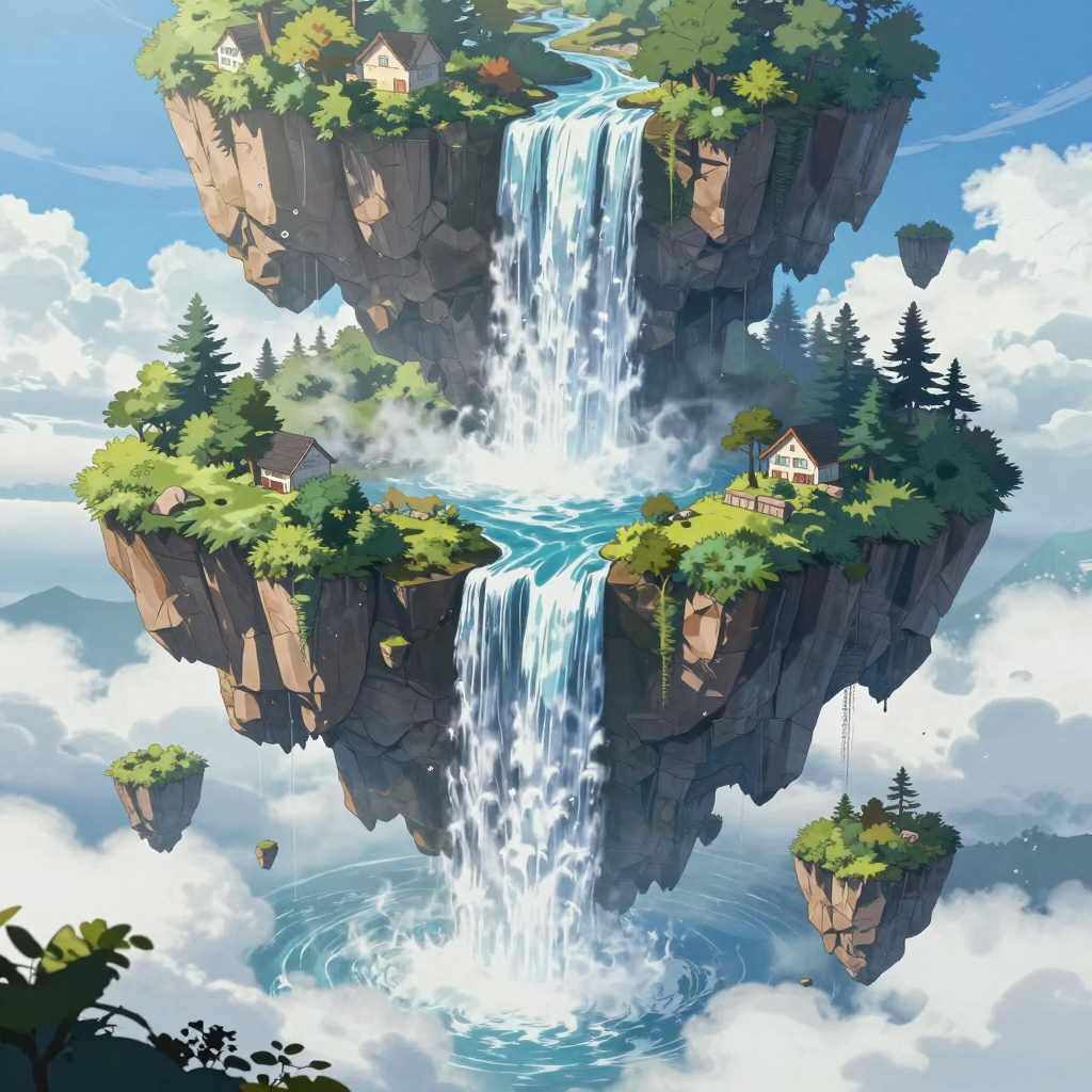 떠다니는 섬과 폭포가 있는 초현실적 풍경 (달리 스타일) | Z-Image 이미지 by 카카오만보