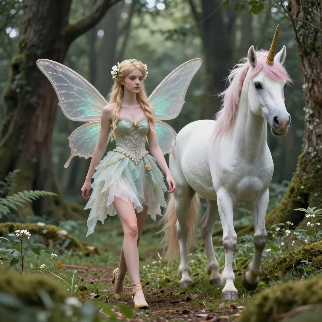 유니콘과 함께 숲속을 거니는 요정 | Z-Image 이미지 by 카카오만보