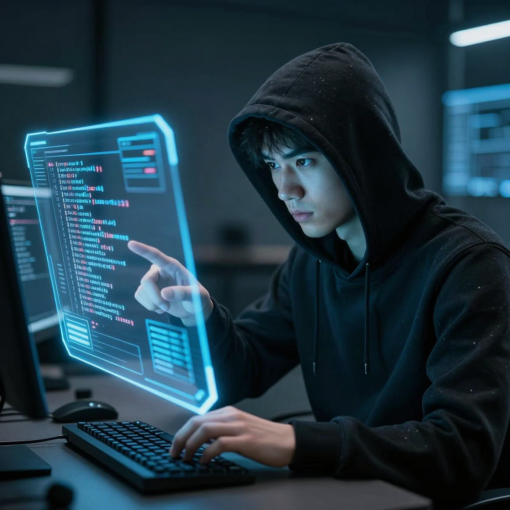 홀로그램 인터페이스를 조작하는 해커 | Z-Image 이미지 by 카카오만보