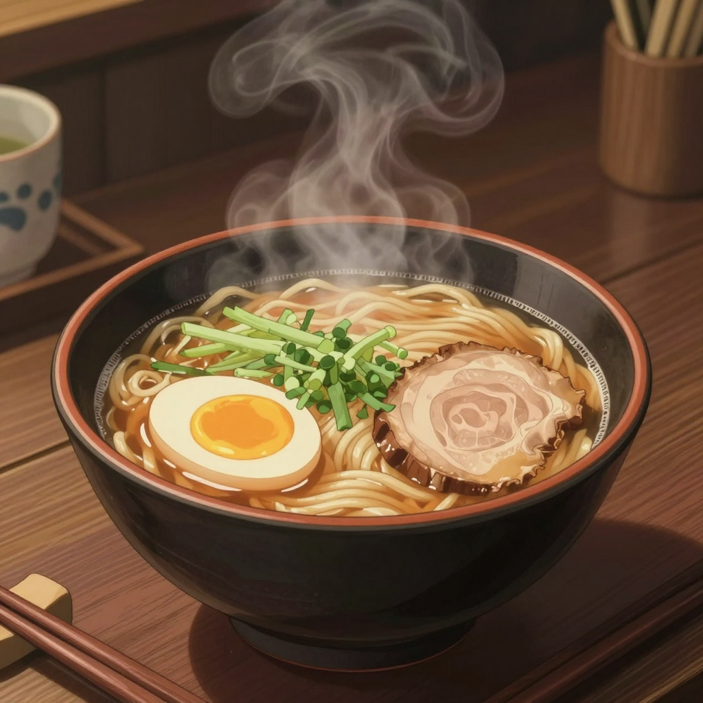 김이 모락모락 나는 지브리 스타일의 라멘 | Z-Image 이미지 by 카카오만보