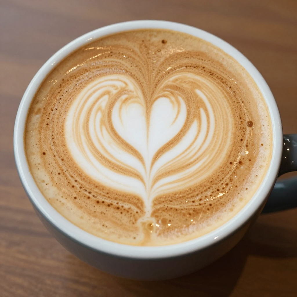 하트 모양 라떼 아트가 그려진 따뜻한 커피 한 잔 | Z-Image 이미지 by 카카오만보