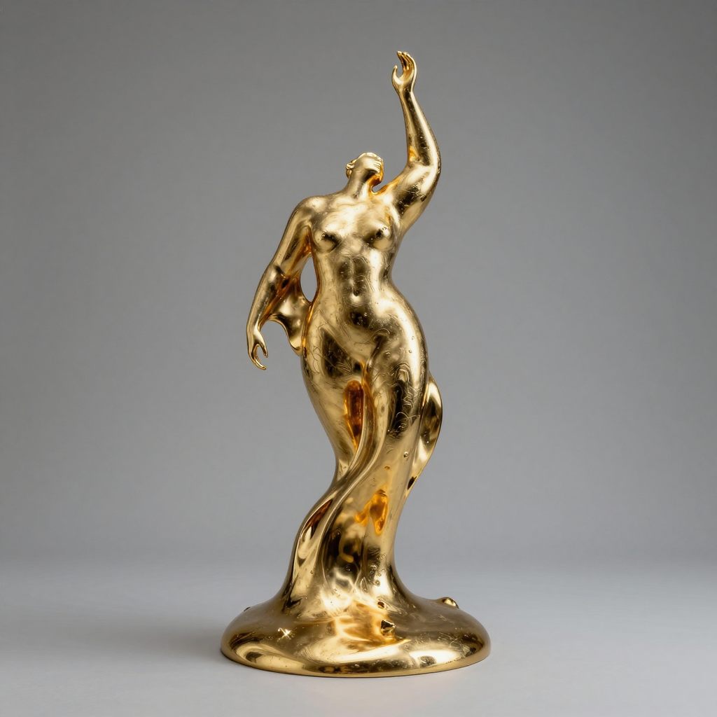 액체 금속으로 이루어진 듯한 흐르는 형태의 조형물 | Z-Image 이미지 by 카카오만보