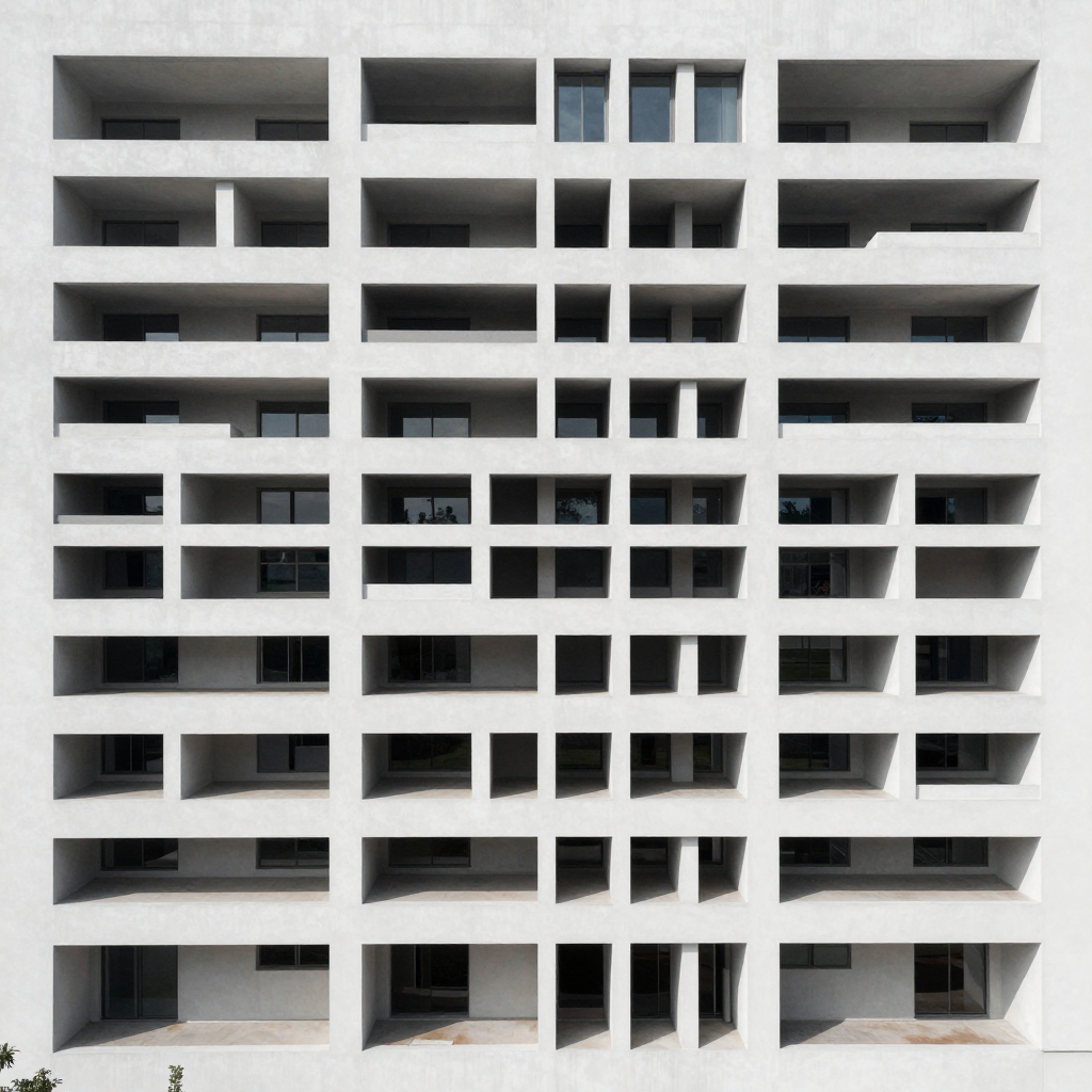 기하학적 패턴으로 이루어진 미니멀리즘 건축물