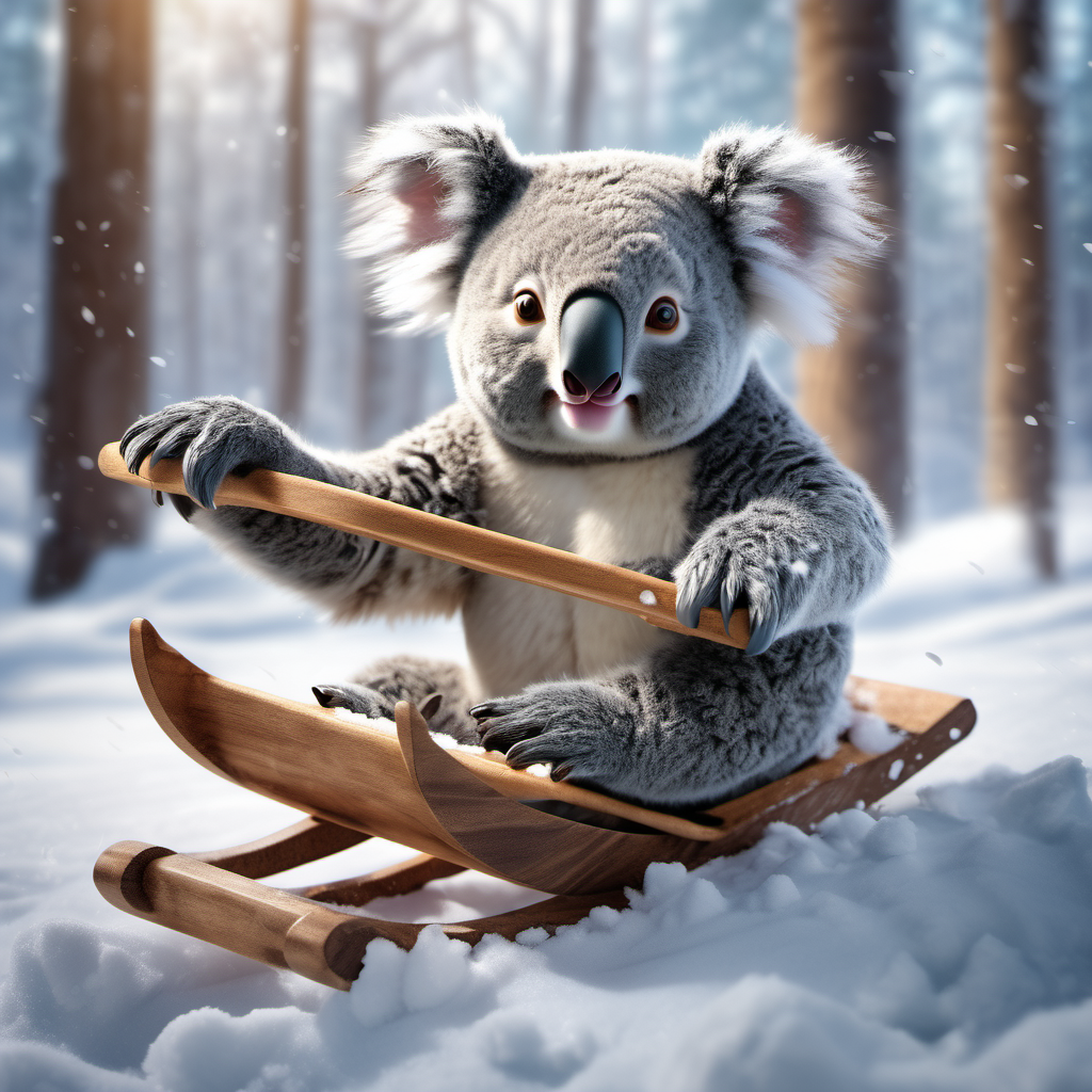 썰매를 타는 코알라 | stable-diffusion-xl 이미지 by 코알라