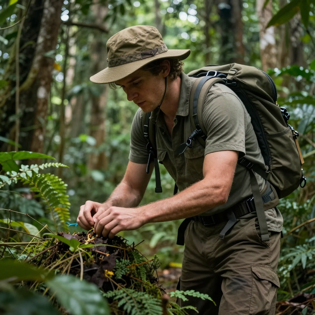 탐험가 모자를 쓰고 정글을 헤치고 나가는 남성 | Z-Image 이미지 by 카카오만보