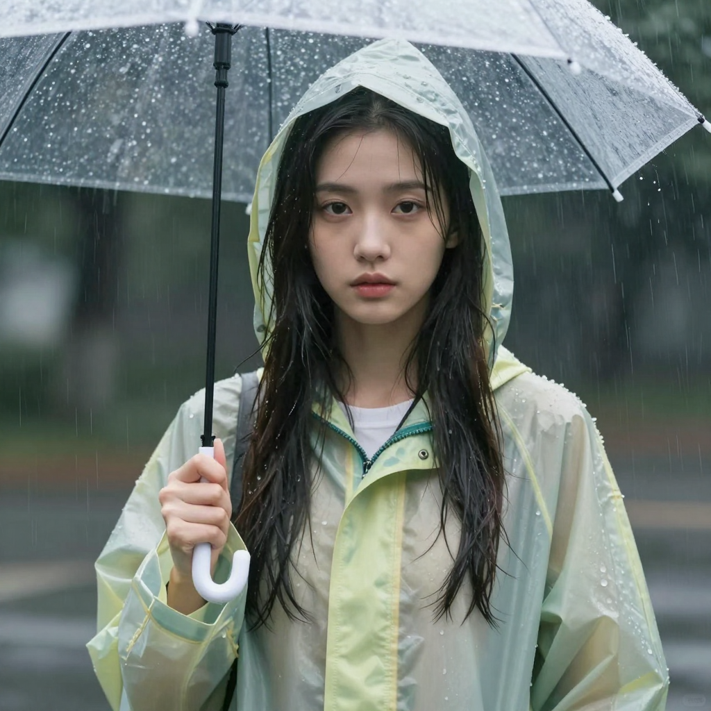 우비를 입고 비를 맞는 소녀 | Z-Image 이미지 by 카카오만보