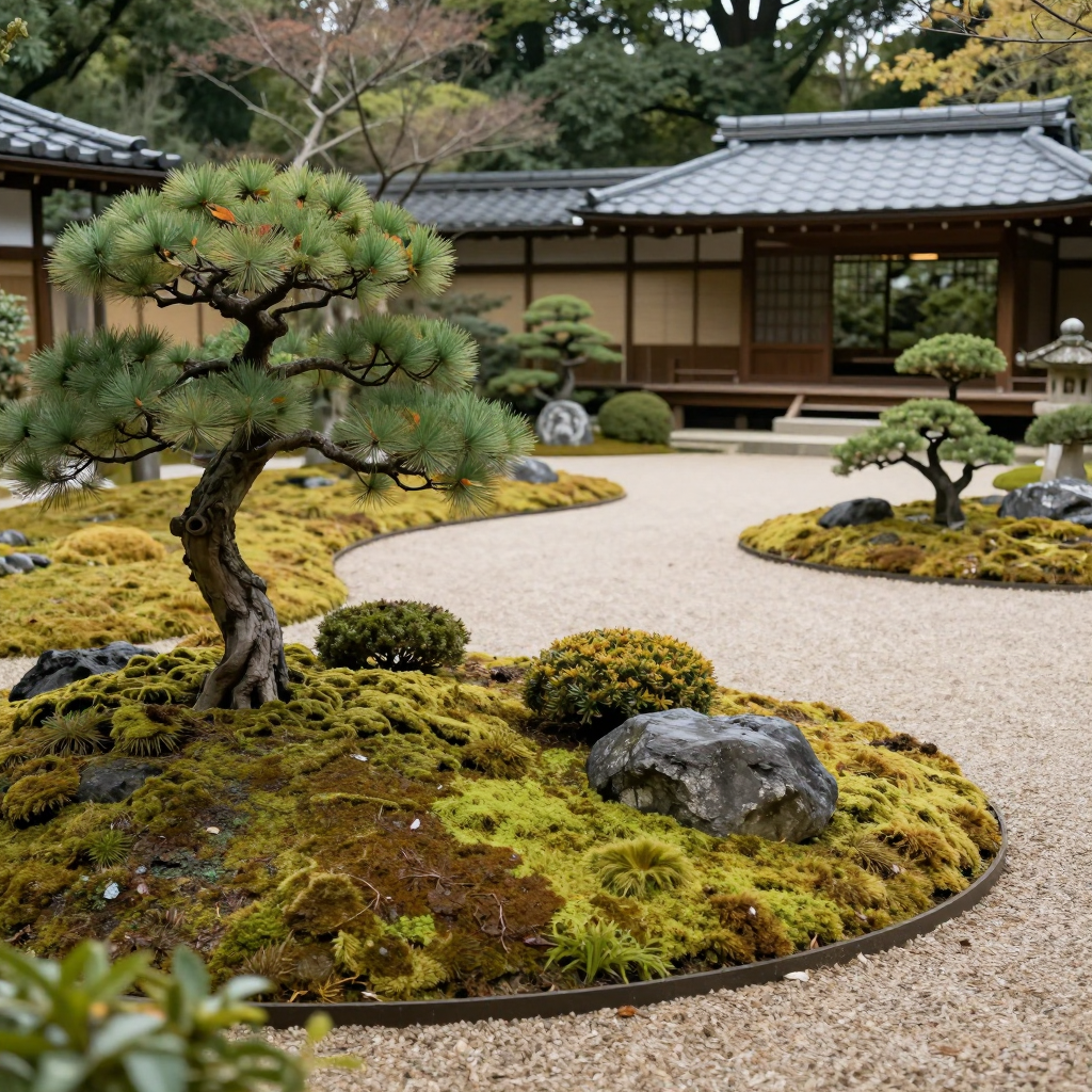Peaceful zen garden, meticulously detailed, Japanese aesthetic, highly detailed, sharp focus, well composed, realistic anatomy