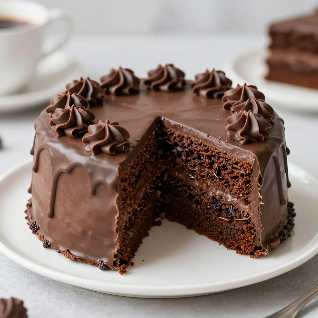 chocolate cake, highly detailed, sharp focus, well composed, realistic anatomy, delicious