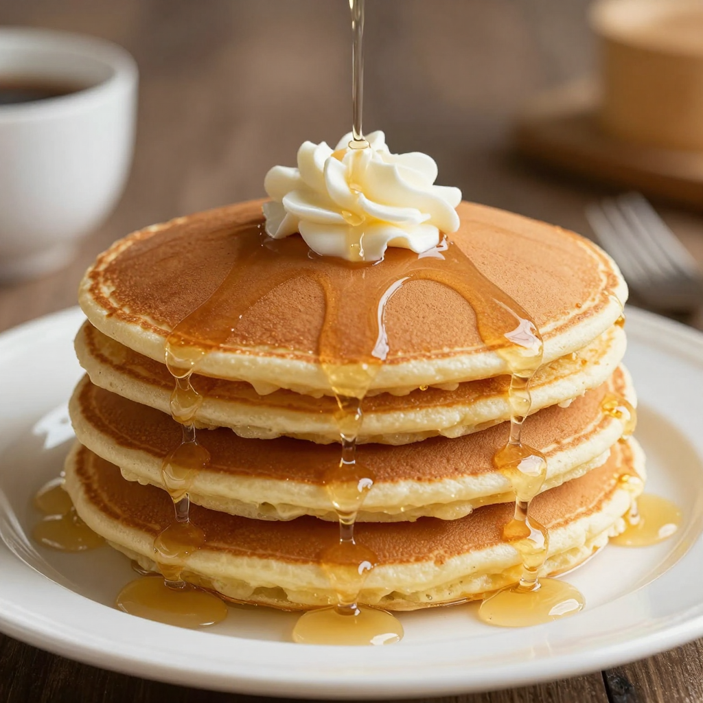delicious pancakes, highly detailed, sharp focus, well composed, realistic anatomy, warm lighting