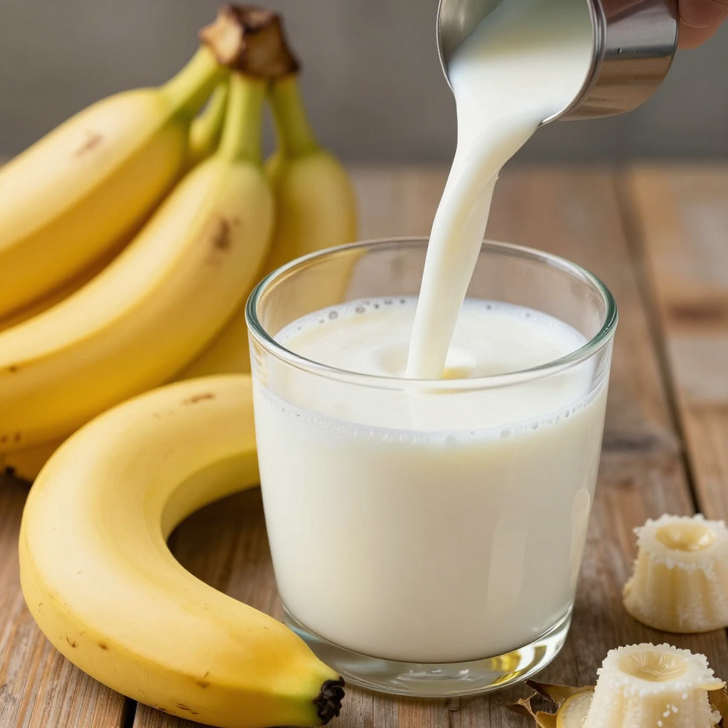 Banana flavored milk, highly detailed, sharp focus, well composed, realistic anatomy, vibrant colors