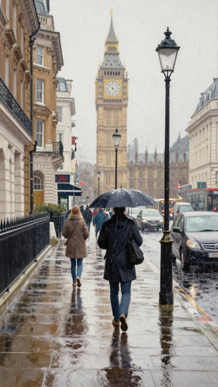 비 오는 런던 거리를 그린 수채화 | Z-Image 이미지 by 카카오만보