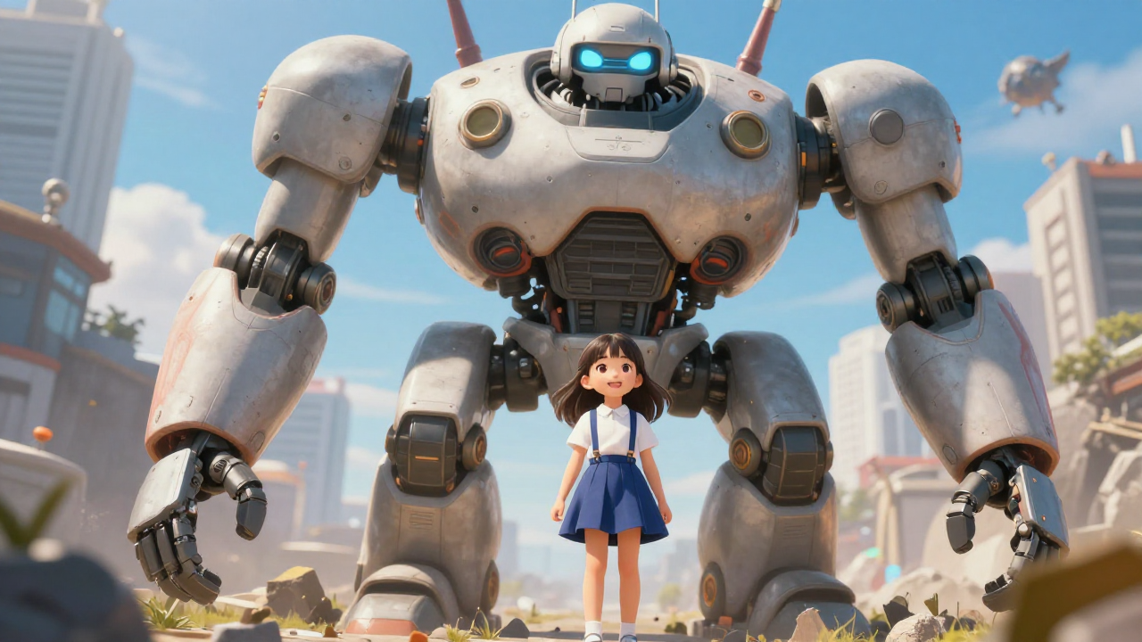 거대한 로봇과 교감하는 작은 소녀 | Z-Image 이미지 by 카카오만보