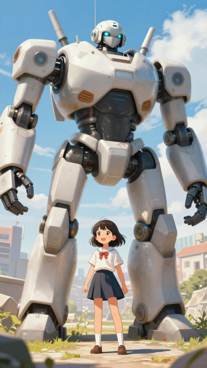 거대한 로봇과 교감하는 작은 소녀 | Z-Image 이미지 by 카카오만보
