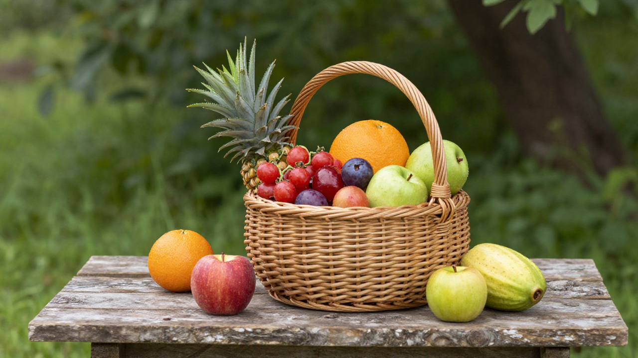 나무 탁자 위 신선한 과일 바구니 정물화 | Z-Image 이미지 by 카카오만보