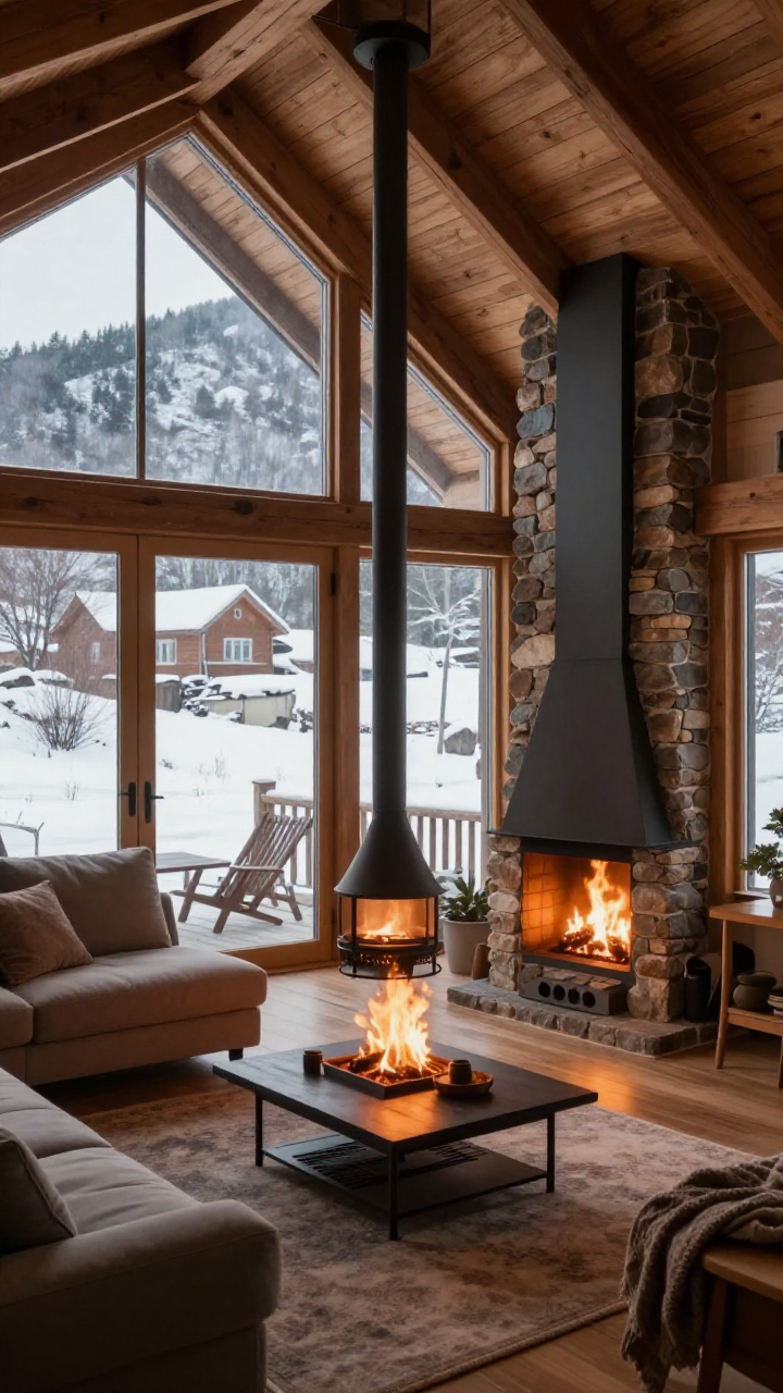 눈 덮인 산장과 따뜻한 벽난로가 있는 아늑한 거실 | Z-Image 이미지 by 카카오만보