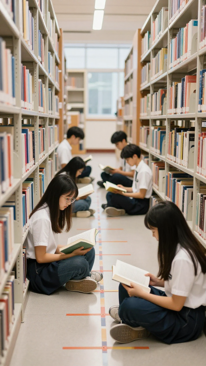 도서관 사다리에 앉아 책을 읽는 학생 | Z-Image 이미지 by 코알라