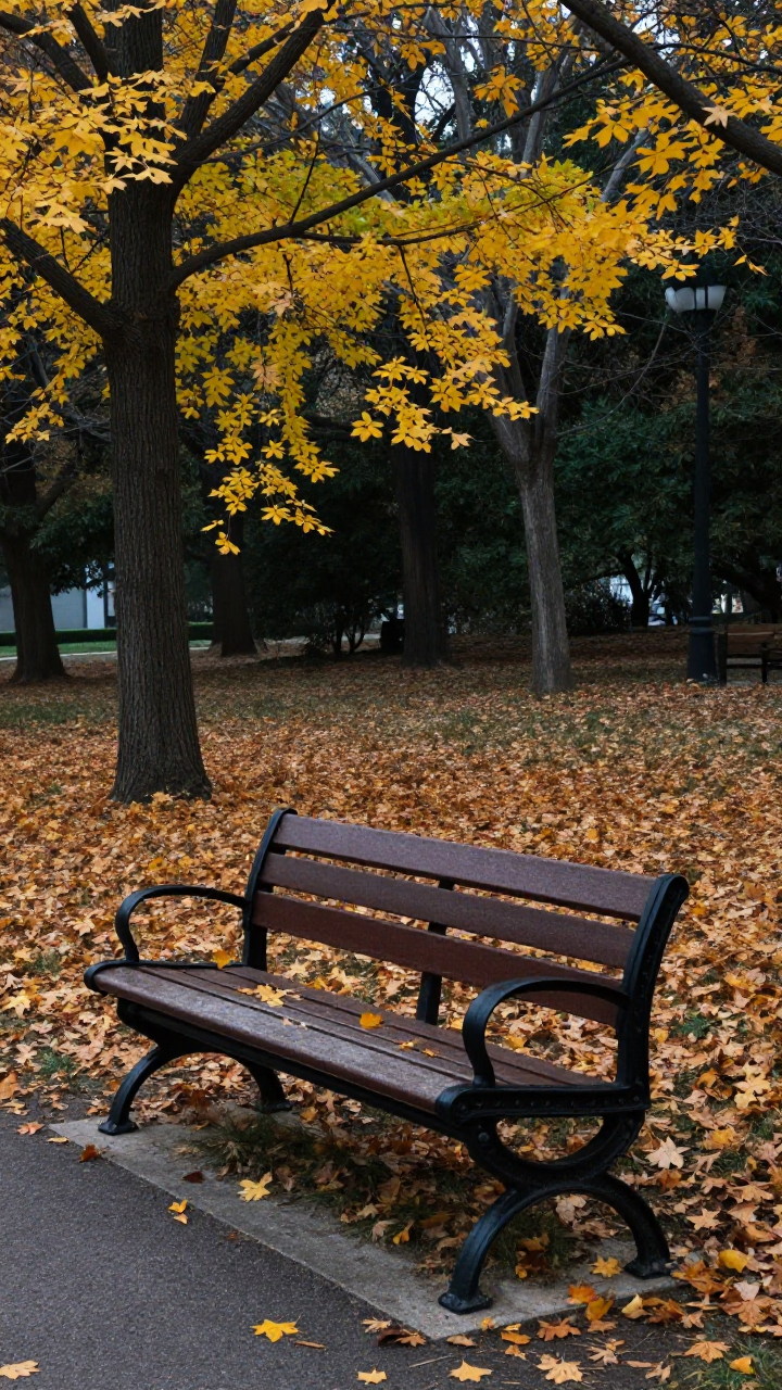 가을 낙엽이 떨어진 공원의 쓸쓸한 벤치 | Z-Image 이미지 by 카카오만보