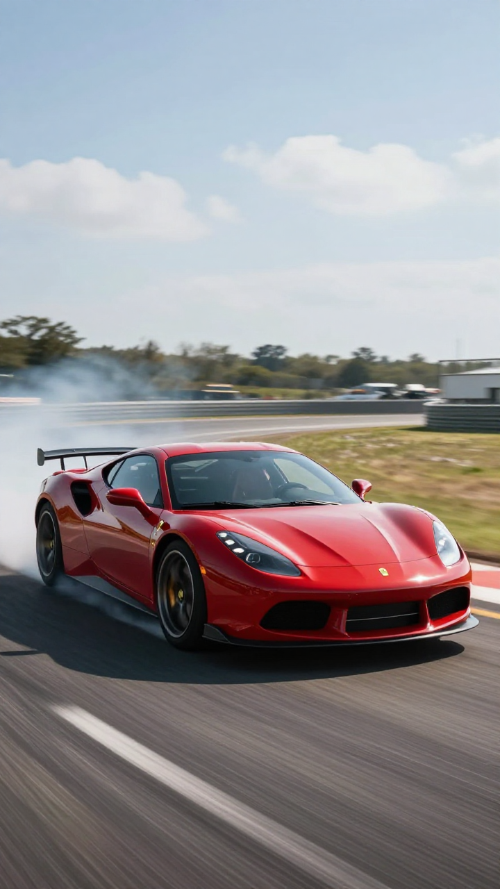 트랙 위를 드리프트 하는 붉은 스포츠카