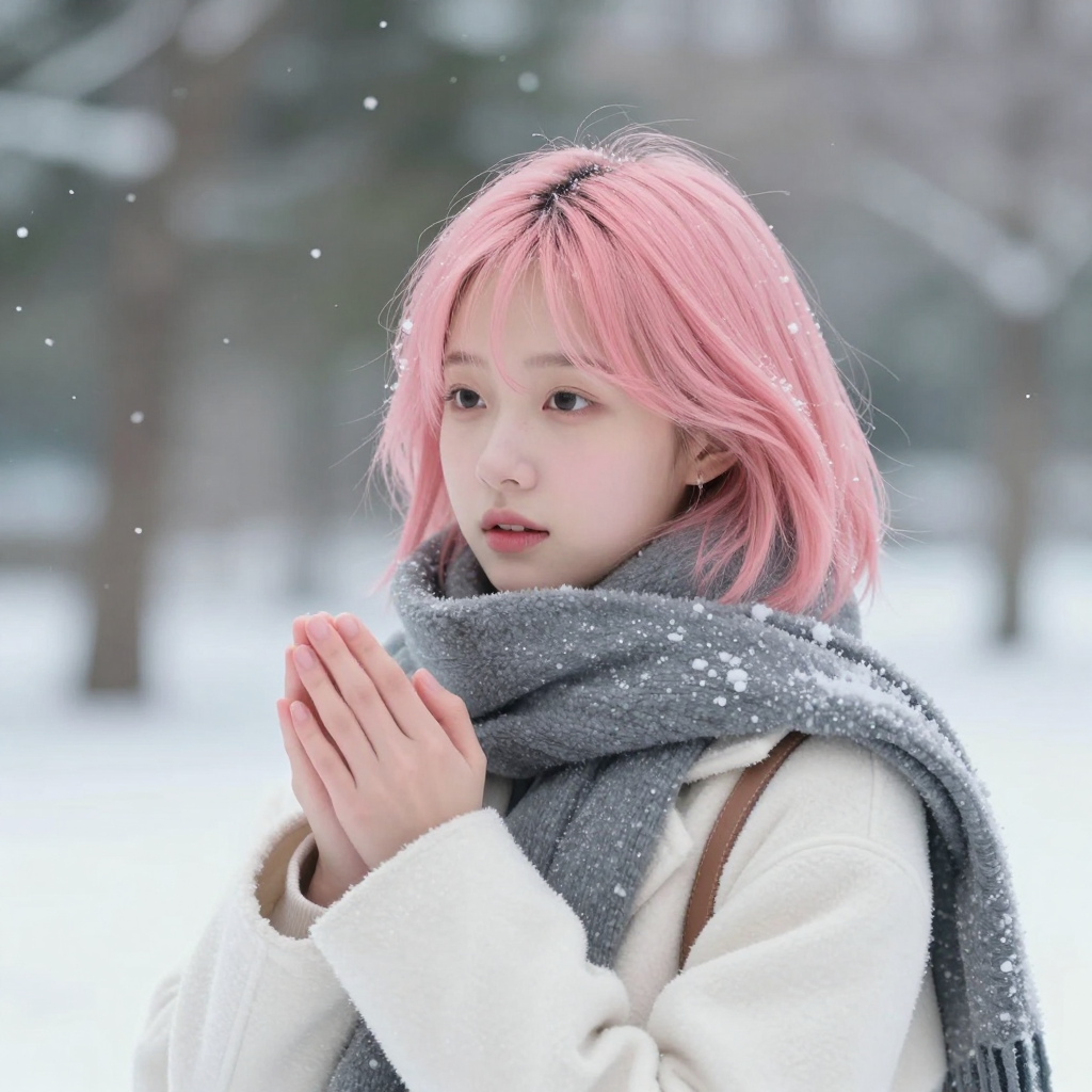 겨울에 눈을 맞는 핑크 머리 소녀 | Z-Image 이미지 by 카카오만보