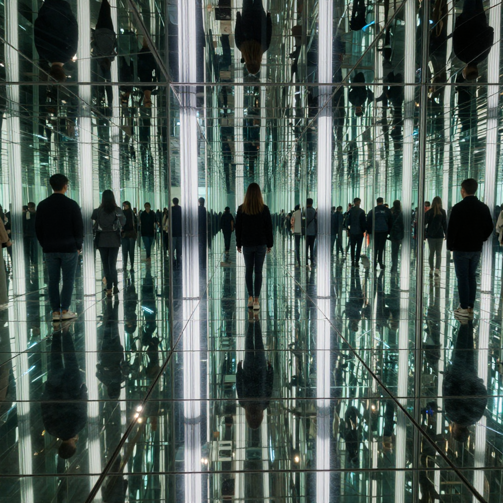 거울 미로 속에 갇힌 듯한 무한 반사 이미지 | Z-Image 이미지 by 카카오만보